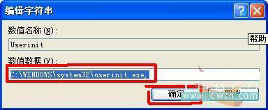 5、用注冊表編輯器修改[HKLMSOFTWAREMicrosoft Windows NTCurrentVersionWinlogonUserinit]這個值項的值,由被病毒修改后的“c:windowssystem32 userinit.exe ,ABC.EXE”改為正常的“c:windowssystem32userinit.exe,”(修改注冊表值項值的操作這里就不羅嗦了)