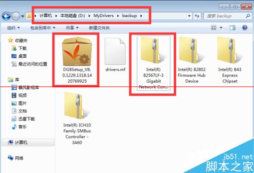 5、待網卡驅動備份完成后,建議進入網卡驅動備份目錄,將“驅動精靈”安裝程序拷貝到此目錄。以方便在安裝系統完成后,重新安裝“驅動精靈”來還原網卡驅動。