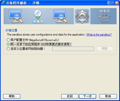 12、出現(xiàn)此窗口時(shí),由于本文制作的是便攜版,所以選擇第2項(xiàng)“同一目錄下的應(yīng)用程序(USB和便攜式媒體使用)”,然后點(diǎn)擊“下一步”: