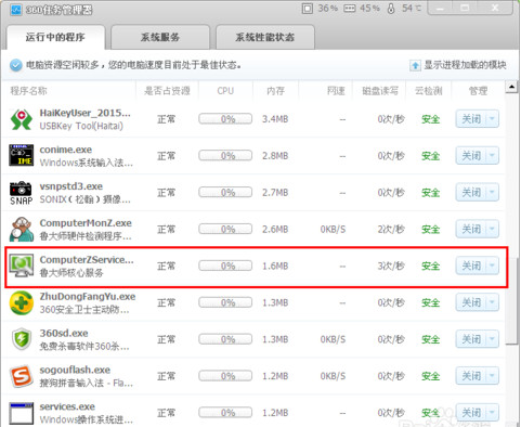 2、下載之后,會自動打開任務管理器,找到運行中的程序內找到魯大師核心服務,并點擊關閉。