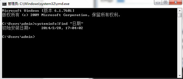 在DOS窗口中輸入字符串 systeminfo|find "日期" ,回車,等待片刻,就可以看到當前系統的安裝日期和時間信息了。正在使用XP系統的朋友們,趕緊試試用這個方法查查你的XP系統是什么時候安裝的吧!