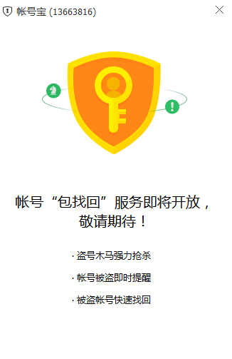 賬號木馬強力槍殺、賬號被盜即時提醒、被盜賬號快速找回