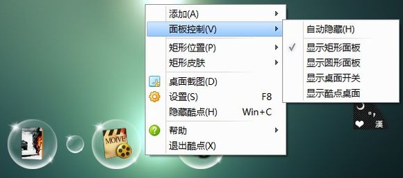 右鍵點擊酷點桌面,就能出現這些選項了,其中的面板控制選項里的幾個都比較重要。