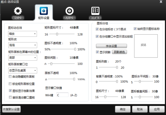 這里的快捷方式圖標是使用“科幻透明快捷條”設計的,原理也是右鍵點開后設置程序路徑,然后修改名稱,過程如圖。
