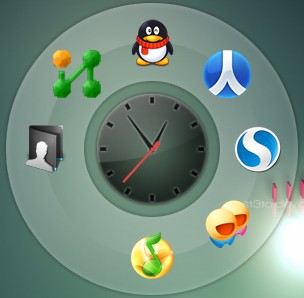 這個就是上圖中圓形面板的效果,里面可以任意添加快捷方式,還可以設成兩層圈,最中心的鬧鐘圖標還可以自行設置成更多個性的圖片。。