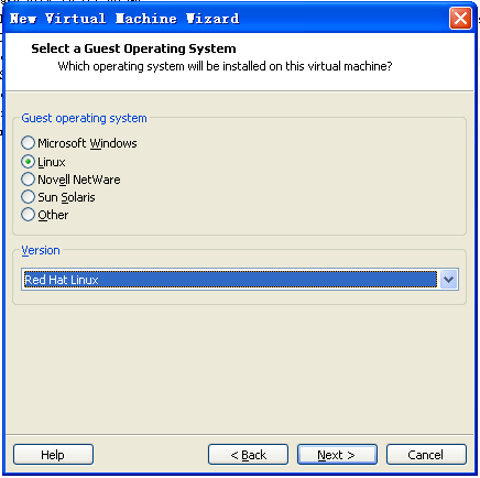 操作系統類型中選擇Linux,版本(Version)為RedHat Linux。