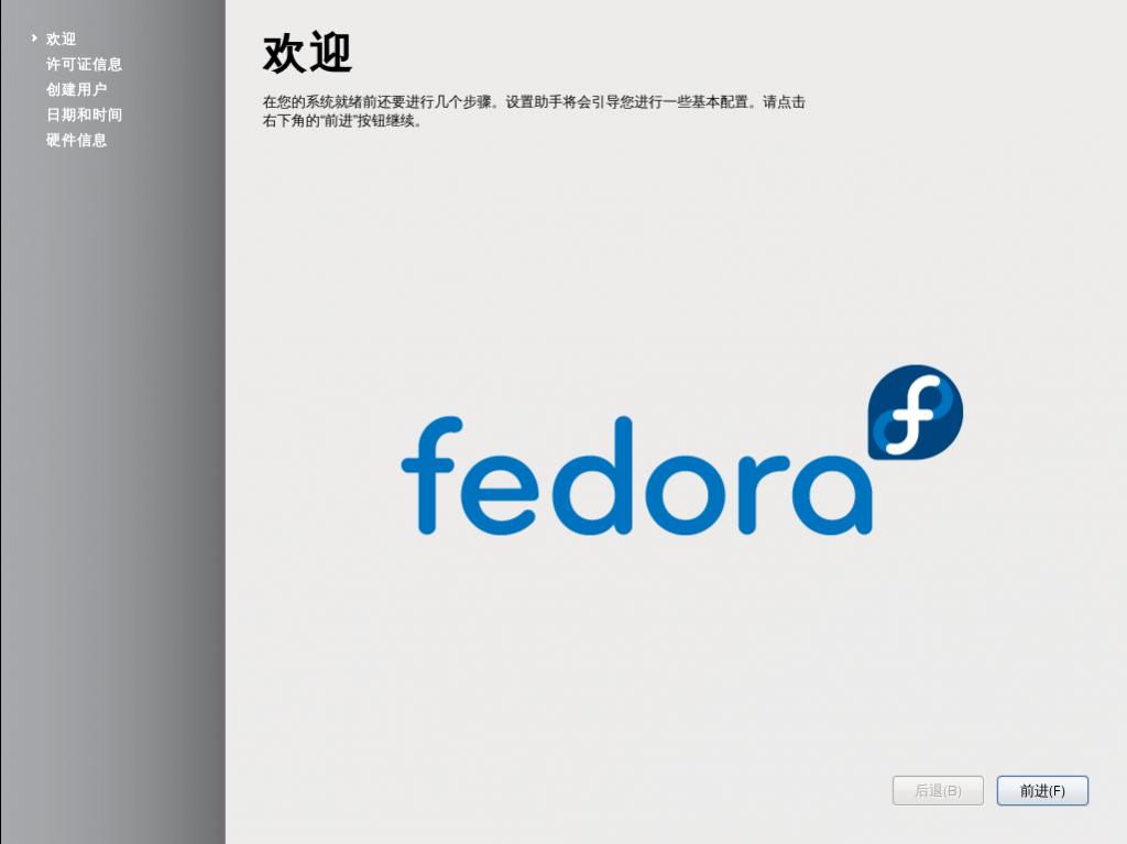 4 設置Fedora重啟系統后,進行設置界面。