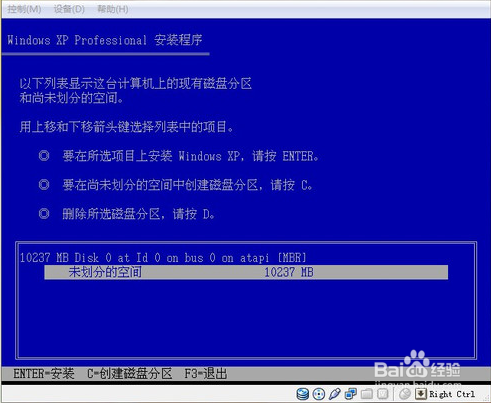 之后就進入了我們比較熟悉的xp安裝界面。什么?你不熟悉?好吧,我會順便教你安裝xp操作系統。熟悉的人請選擇性跳過。