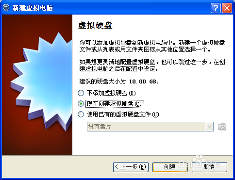 選擇虛擬硬盤,這里需要創建新的虛擬硬盤。