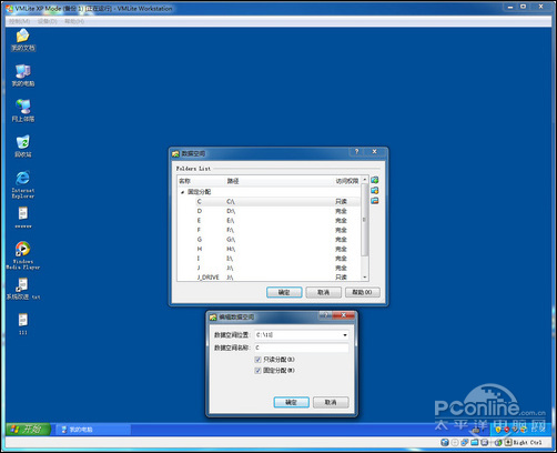 ◆ 用戶可以在“VMLite XP Mode→菜單欄→設備→分配數據空間”中設置對真實硬盤的共享功能。