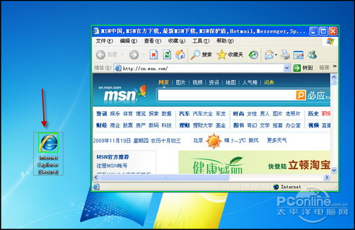 安裝VMLite XP Mode后,在用戶的Windows 7 桌面上自動創建了一個IE瀏覽器快捷方式。用戶可以使用它,在虛擬運行的IE中放心的瀏覽網頁,而不必擔心真實系統(Windows 7)遭到網頁病毒木馬的侵害,因為它們都被圍困在了虛擬系統中。這就相當于沙盤功能。