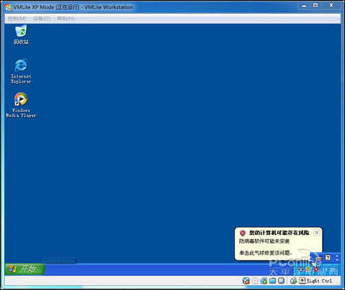 進入VMLite XP Mode環境,用戶可以像操作另一臺電腦一樣的對這個虛擬系統(XP)進行操作,安裝使用軟件、瀏覽網頁、聊天等 一切皆如既往。