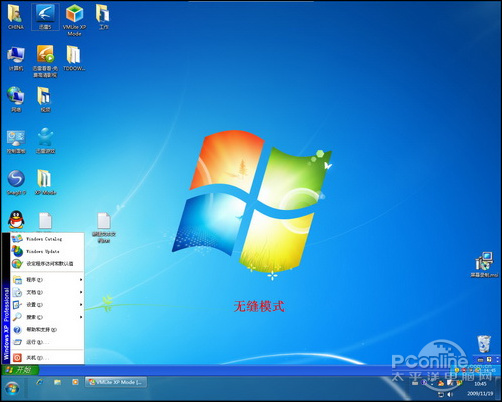 用戶通過虛擬系統的開始菜單運行虛擬系統中安裝的應用軟件時,就好像在Windows 7 下直接運行一樣,無需束縛于虛擬機的邊框之中。它良好的解決了應用程序與Windows 7 的兼容性問題(因為它是運行在虛擬系統(XP)中的),同時也給了用戶靈活操作的使用環境。