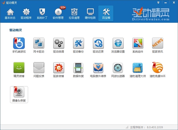 2、運行新版驅動精靈,點擊“百寶箱”