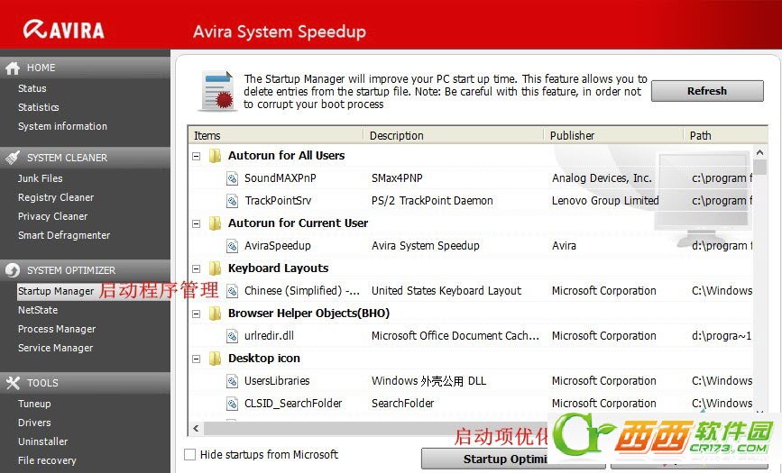 最后是Avira System Speedup提供的各種小工具,這里大家看看就好,我就不一一介紹了。