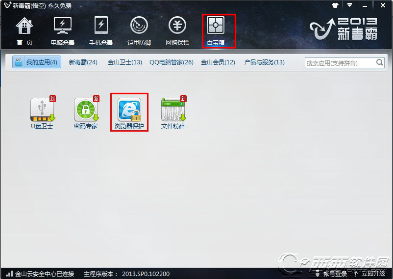 2、點擊“百寶箱”,選擇下方“瀏覽器保護", 如下圖: