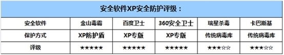 金山毒霸、百度衛士、360安全衛士均已推出XP專版或者XP專有防護模塊,而瑞星殺毒與卡巴斯基尚為原有傳統病毒防護手段。