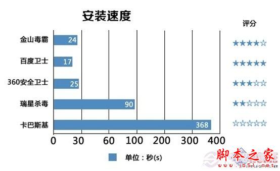 安裝速度在實際使用中影響體驗并不明顯,在本次測試中除卡巴斯基、瑞星殺毒之外其他三家都表現非常好。