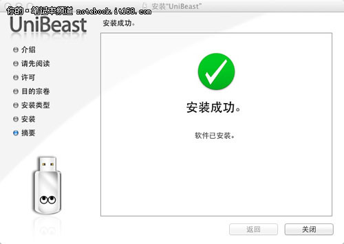 格式化完畢后,運(yùn)行UniBeast軟件來(lái)制作黑蘋(píng)果安裝盤(pán)。
