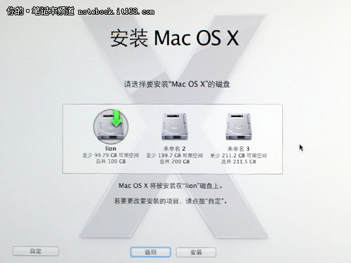 接下來(lái)的事情就簡(jiǎn)單了,繼續(xù)安裝,選擇Lion分區(qū)。