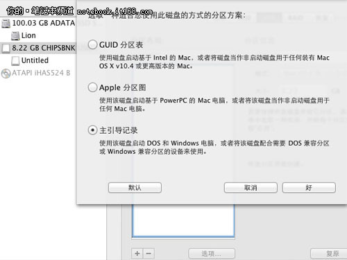 因?yàn)榍懊媸怯肕ac App Store下載的安裝程序,可以勾選第一項(xiàng)“Mac App Store“Install Mac OS X Lion””前面的方塊來(lái)制作臺(tái)式電腦安裝盤(pán);第二項(xiàng)可以在使用原裝USB啟動(dòng)盤(pán)時(shí)勾選;勾選第三項(xiàng)后可以啟動(dòng)筆記本。