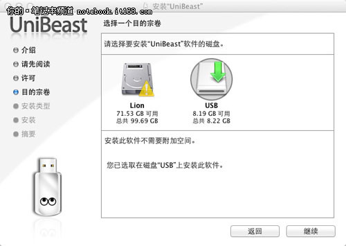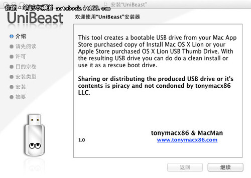 ▲運(yùn)行UniBeast軟件,一路點(diǎn)繼續(xù)