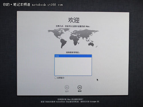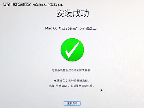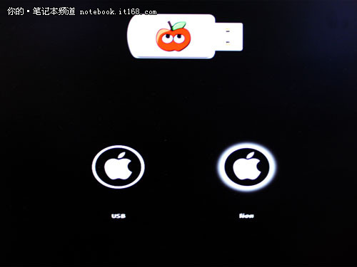 重啟之后并不是馬上進(jìn)入系統(tǒng),和安裝Windows一樣,我們還需要設(shè)置一番。重啟后自動(dòng)進(jìn)入選擇界面,用方向鍵選擇右邊的Lion系統(tǒng)。