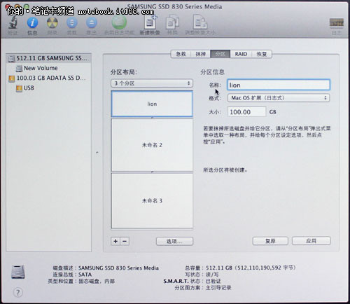 ▲分成3個(gè)區(qū),為方便記憶,把用來(lái)裝系統(tǒng)的第一個(gè)分區(qū)命名為L(zhǎng)ion