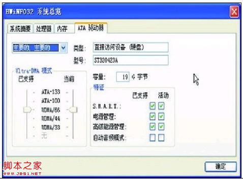 點擊主界面工具欄上的"摘要"按鈕彈出系統總覽界面,如下圖.可以查看CPU,主板,內存的詳細信息,顯示卡,聲卡的芯片組;以及硬盤所支持的DMA模式,當前支持的DMA模式等.