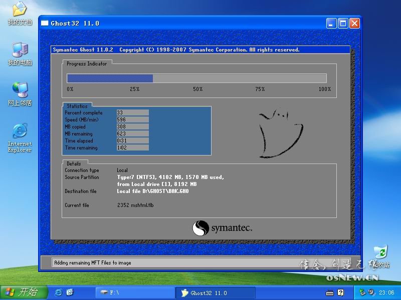 osghost是一個用于對磁盤分區進行一鍵備份或還原的工具。提供多種環境下的操作:win32、winpe、DOS,支持WINDOWS環境下熱備份,完美支持WIN7。