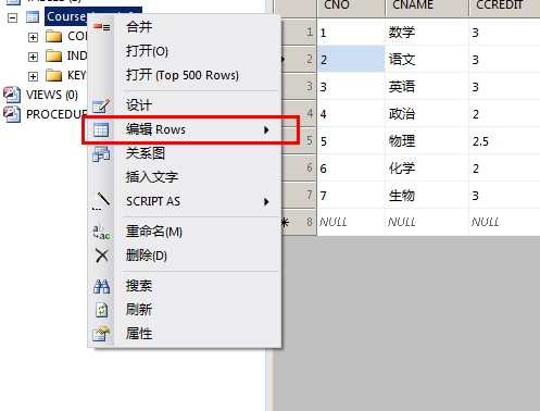 打開表數據