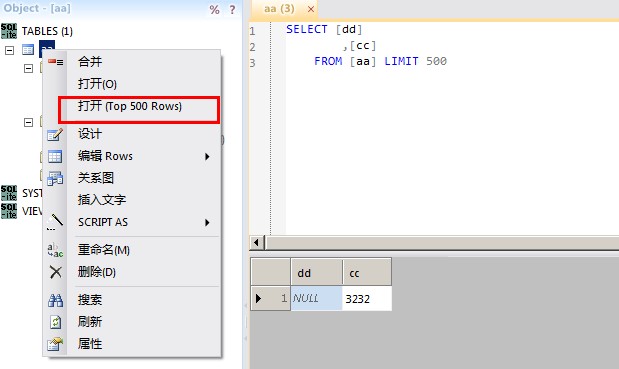 這個軟件好在有簡單的SQL語句語法提示,例如SQLSERVER里使用top關鍵字,而SQLITE里使用limit關鍵字來查詢一定行數的表數據