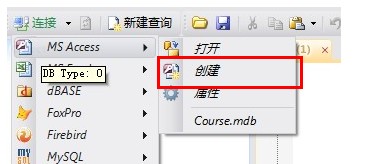 創建ACCESS數據庫的步驟就不說了,大部分文件數據庫,例如:ACCESS,SQLITE,SQLCE都可以在DATABASE.NET里創建