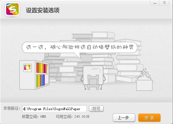 下載解壓后運(yùn)行sogou_wallpaper.exe即可開(kāi)始安裝,安裝過(guò)程最好選擇自定義安裝