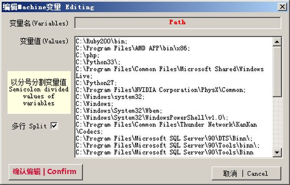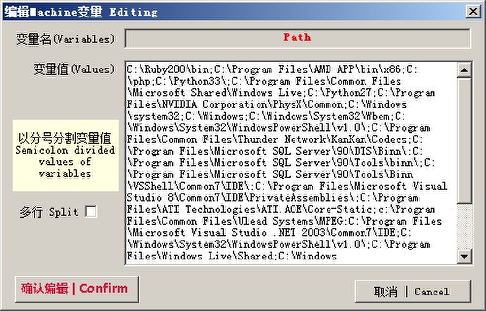 有選項(默認)可以切分多個變量值為多行, 方便讀改內容。編輯后確認, 會自動整合為無換行的一條變量值。