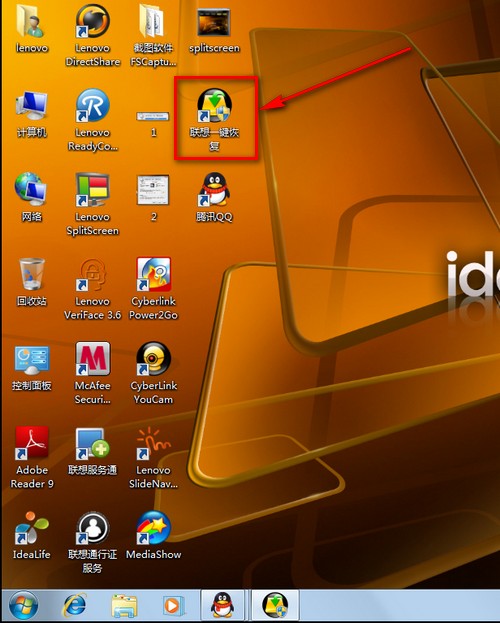打開桌面聯想一鍵恢復圖標,如圖: