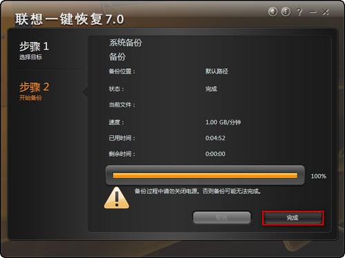 單擊完成退出系統備份程序