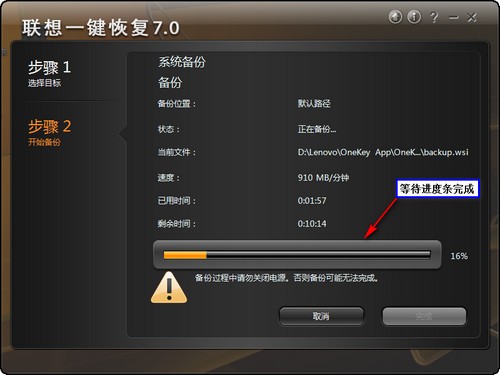 正在進行數據備份,等待進度條完成