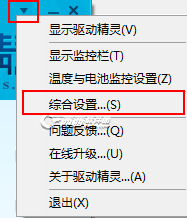 2、安裝完成后打開驅動精靈,點擊界面右上角的倒三角選擇綜合設置進入設置界面后點擊驅動程序,自己選擇一個驅動備份路徑以后需要的時候好找到。