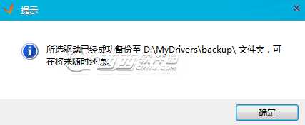 5、備份完畢后會有提示,以后需要該驅動就可以在剛才設置的備份驅動默認路徑中找到該驅動了。