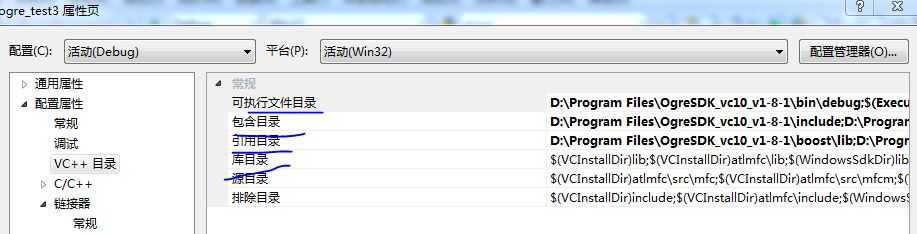 把應(yīng)用程序的目錄設(shè)到Ogre目錄下,在菜單欄依次點擊項目——屬性——配置屬性——調(diào)試,把工作目錄改為:
