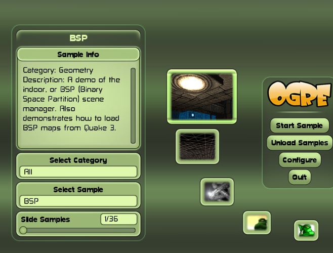 4、打開D:/Program Files/OgreSDK_vc10_v1-8-1/bin/debug下面的SampleBrowser_d.exe,就可以進入Sample