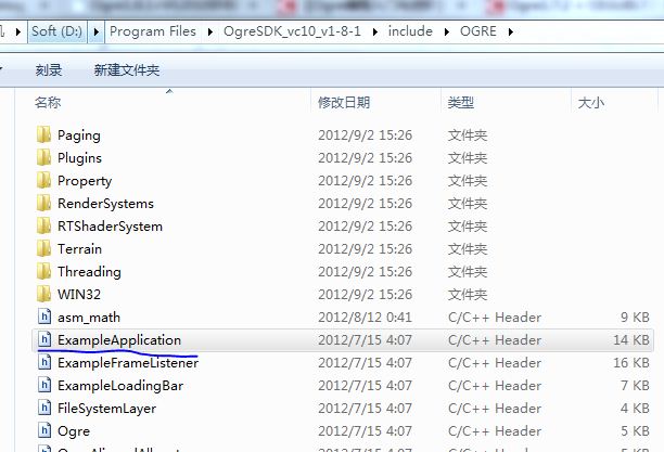 3、在工程里添加現(xiàn)有項,添加頭文件"ExampleApplication.h"。其中ExampleApplication.h在“D:/Program Files/OgreSDK_vc10_v1-8-1/include/OGRE/”下