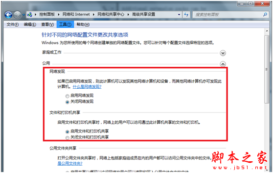 首先要啟用Windows 7的“網絡發現“和”文件和打印機共享“