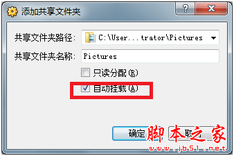 手動掛載有些麻煩吧,VirtualBox提供了“自動掛載”功能,以簡化操作步驟。