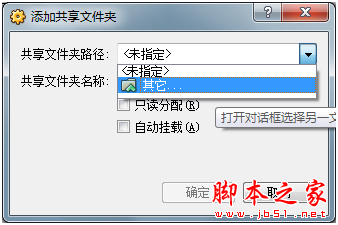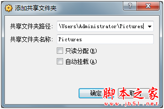指定共享文件夾路徑(主機上文件夾的路徑)