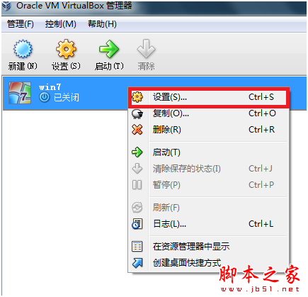 在虛擬機上點擊右鍵,選擇“設置”
