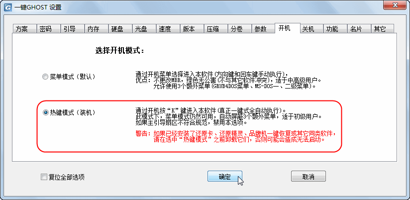 啟動過程中將自動跳過3個額外菜單,直達一鍵備份或一鍵恢復警告對話框(10秒后自動執行)