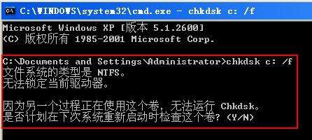 存在打開文件的情況下使用 chkdsk