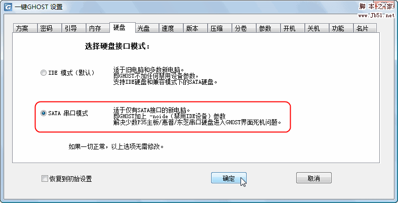 注意:如果是SATA串口硬盤,一般不需要設(shè)置BIOS,如果不能運行GHOST,
